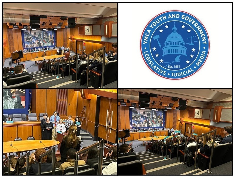 Following three months of preparation, students from across the state attend this 3-day experiential learning program in which they serve as part of a model state government debating bills they and their peers have written. “This conference is a scaffold for leadership. Students defend their ideas with the assistance from past high school attendees on the first day, then travel to the capital and formally debate throughout the morning and into the early evening. This is done in the state assembly, senate and committee chambers. It’s a very rewarding experience for the members who attend!” said Mr. Gardner, who accompanied the students on the trip. These photos were taken at the Senate Chambers and during the presentation of the bill.